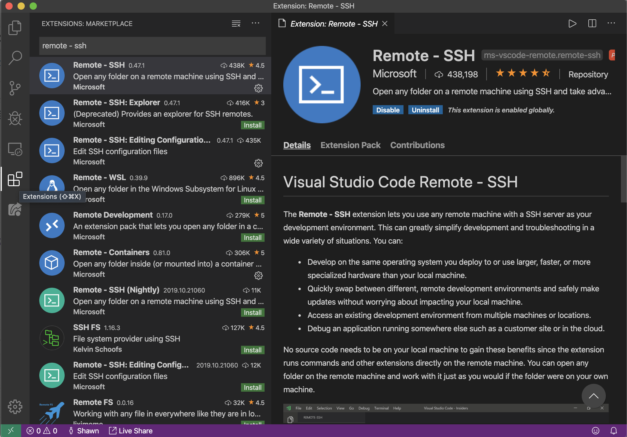 1. Download Visual Studio Code from code.visualstudio.com and install it. 2. Install plugin “Remote - SSH” in the Extensions view