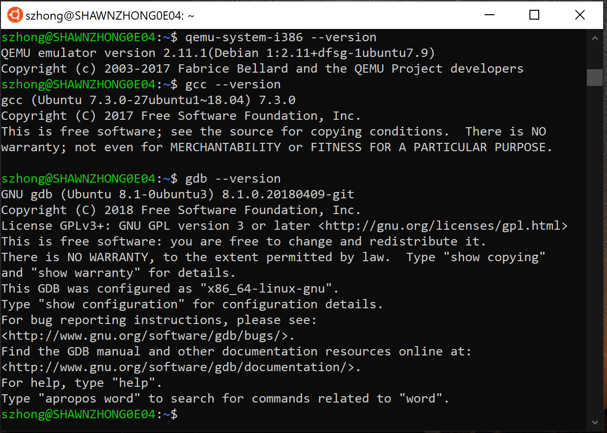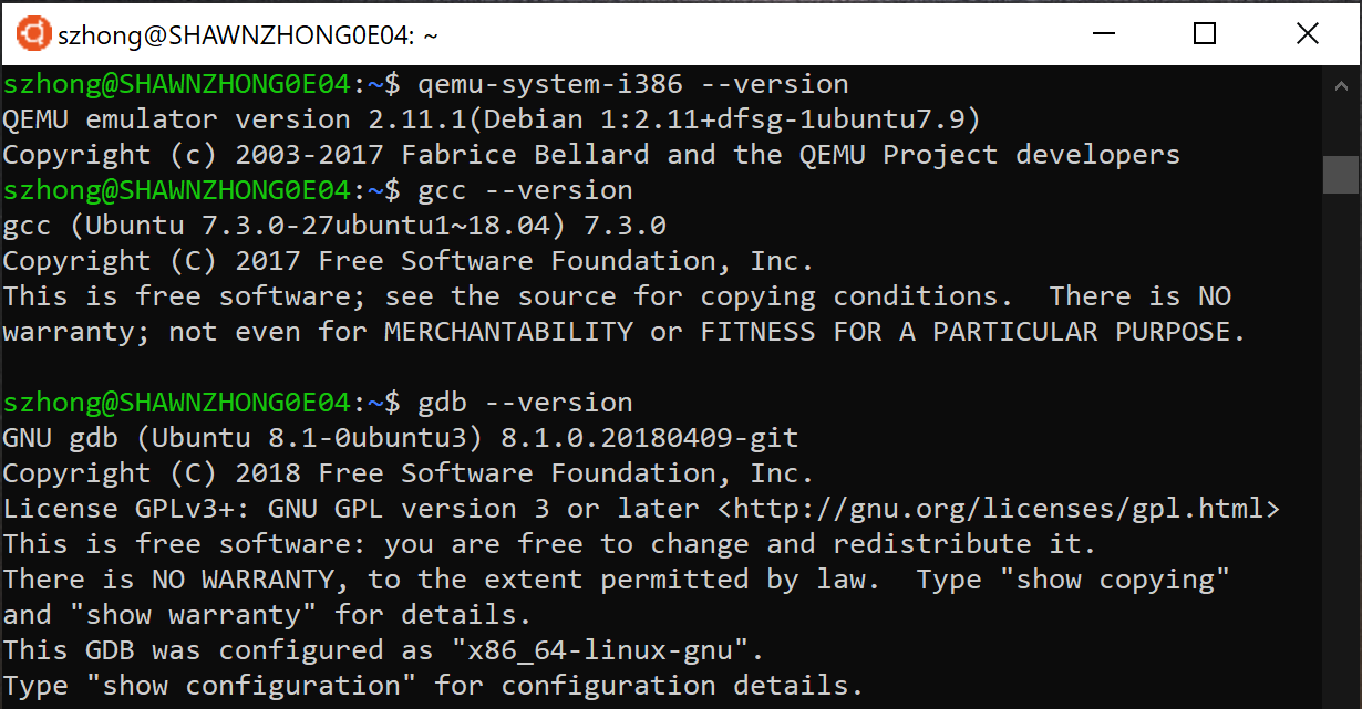 sudo apt-get install git nasm build-essential qemu gdb