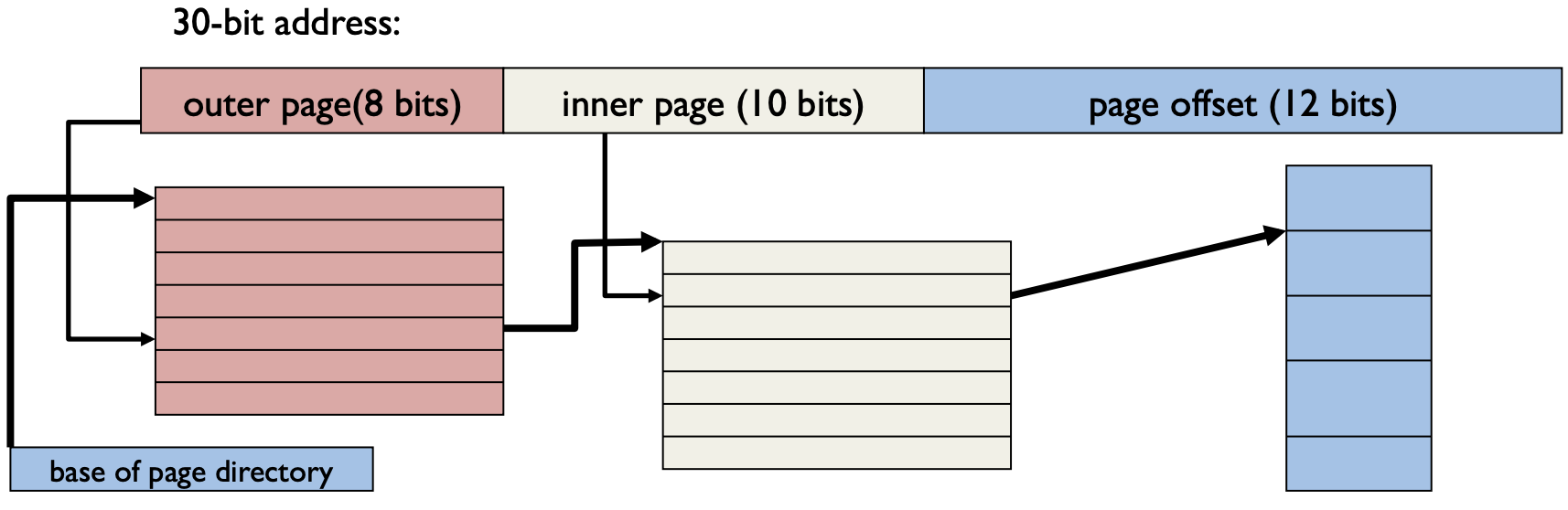 • Page table size: avoid with multi-level paging, inverted page tables etc.