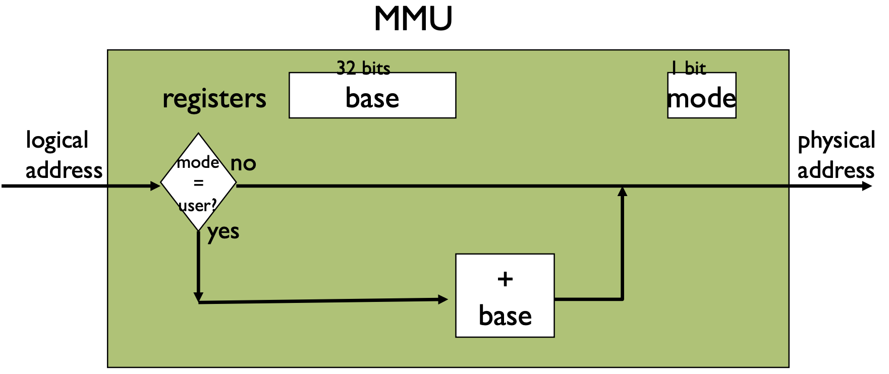 • Perform translation of logical address to physical address ### Dynamic Relocation: Base Register