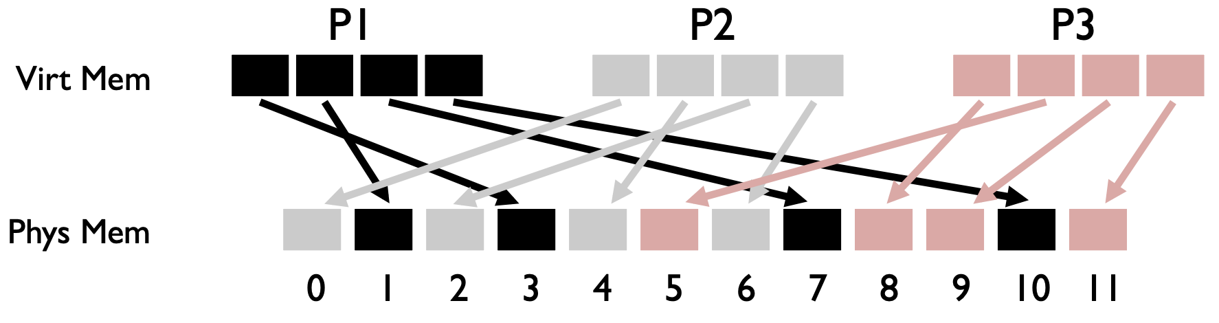 • Page replacement: Look for page with use bit cleared (has not been referenced for a while)