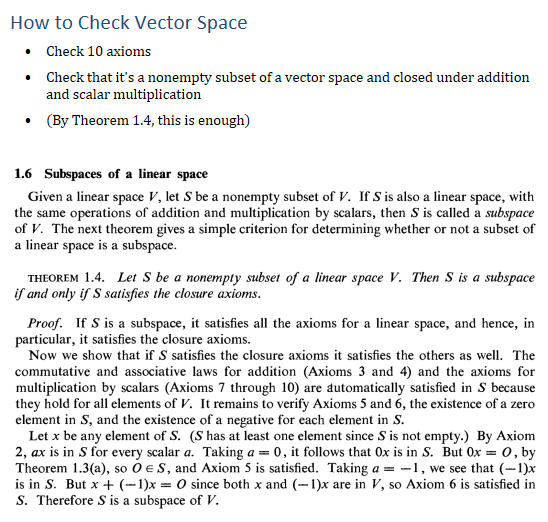 How to Check Vector Space • Check 10 axioms • Check that it