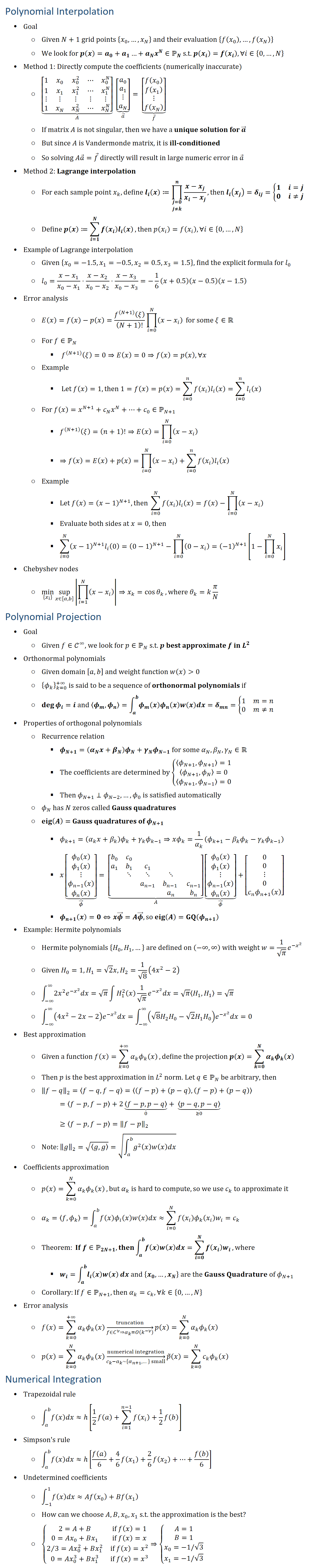 Math 514 - Review for Approximation & Integration